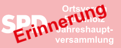 Als Erinnerung hier nochmals der Hinweis auf unsere Jahreshauptversammlung. Grade im Hinblick auf die Ehrung verdienter und langjähriger Mitglieder, freuen wir uns auf eine rege Teilnahme. Und wir freuen uns auf unsere Ministerin für Soziales, Arbeit, Gesundheit und Demografie in Mainz, Sabine Bätzing-Lichtenthäler, welche die Ehrungen vornehmen wird.